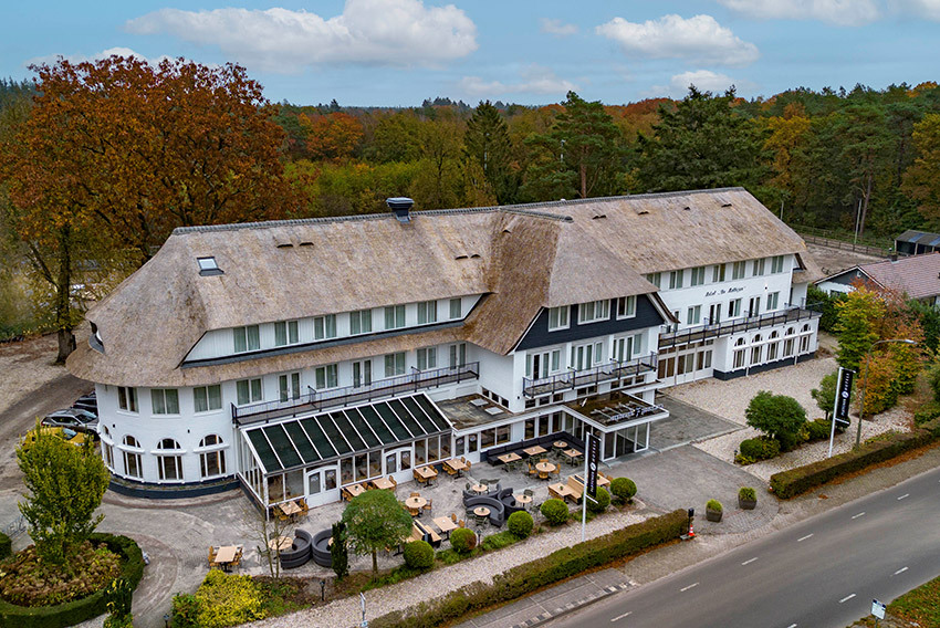 Met 36 stijlvolle hotelkamers, ingericht in de charme van een Engels landhuis maar met een moderne twist, biedt het hotel een warme en comfortabele plek om te ontspannen na een dag vol natuur en avontuur. Vanaf uw hotelkamer wandelt u zo naar ons restaurant, waar u kunt genieten van heerlijke gerechten en gastvrijheid. Wilt u de omgeving actief verkennen? Huur dan een e-bike bij het hotel en ontdek de uitgestrekte Veluwse bossen en heide op een ontspannen manier. En voor wie naast de natuur ook zin heeft in stedelijk vertier, liggen Apeldoorn en Zwolle op korte afstand.
